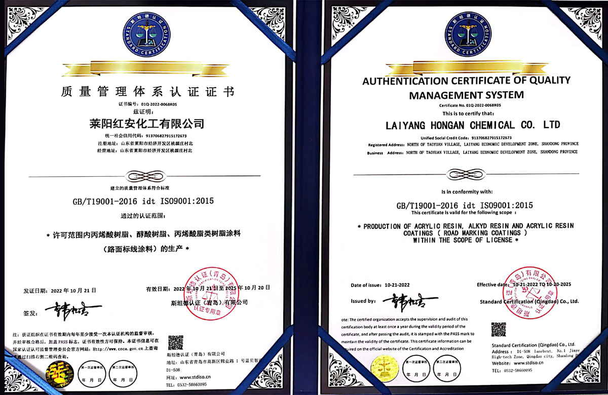 紅安化工經(jīng)過近二十年的打造和積淀,現(xiàn)已建成了一家專業(yè)研制生產(chǎn)涂料合成樹脂的綜合型工廠,位于山東省半島的腹地--萊陽市。公司已通過了三體系認(rèn)證,即ISO9000質(zhì)量管理體系認(rèn)證和環(huán)境、職業(yè)健康安全管理體系認(rèn)證,并獲得了六項國家發(fā)明專利,八項實用新型專利;19年榮獲山東省高新企業(yè)稱號,22年通過了復(fù)審;22年榮獲山東省瞪羚企業(yè)稱謂,還有其他一些榮譽稱號不再一一敘說。 公司現(xiàn)有樹脂合成反應(yīng)釜29套,各類樹脂年生產(chǎn)能力約8萬噸,具有完善的檢測儀器和應(yīng)用服務(wù)條件。